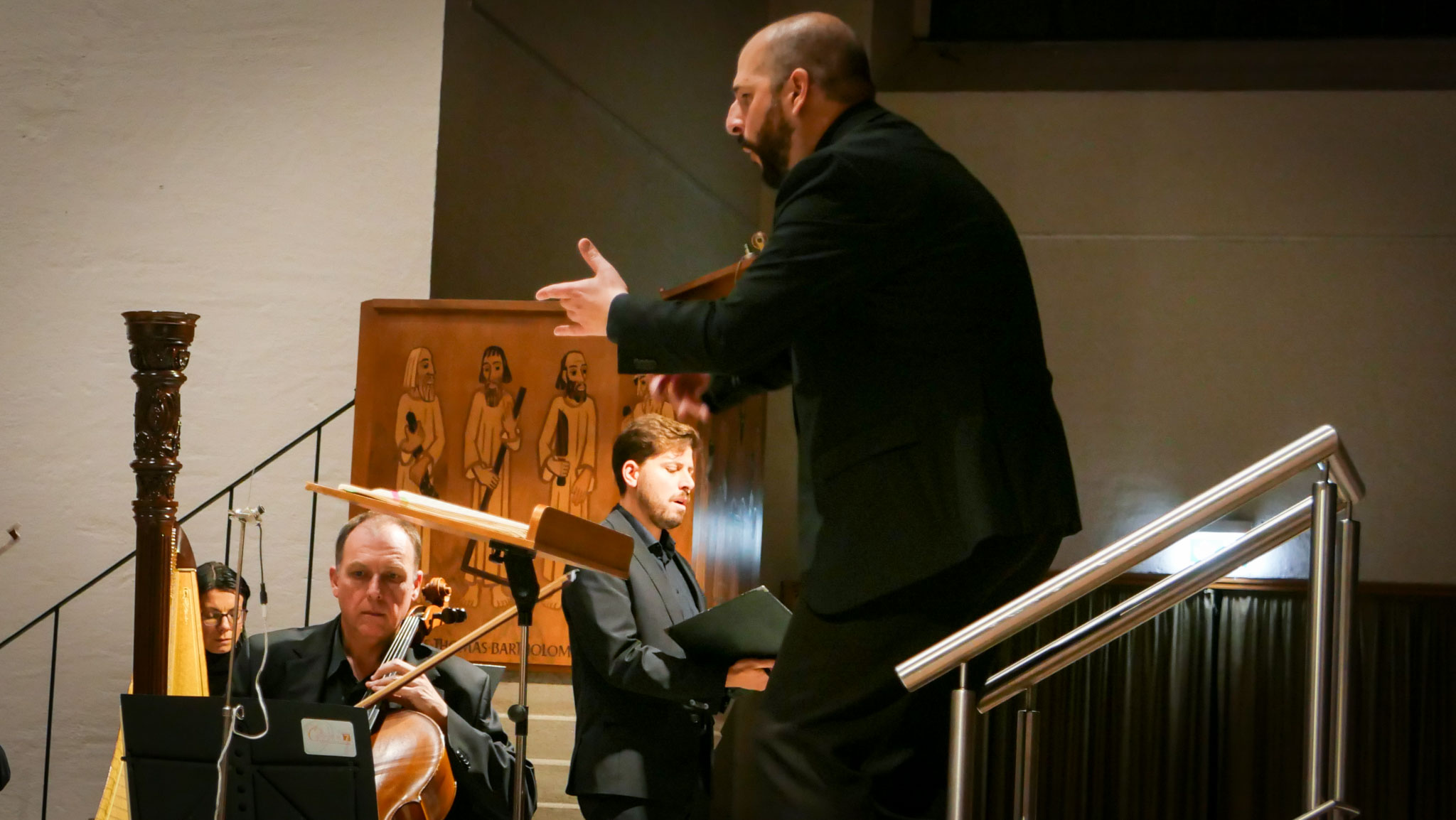 Nach den beiden von stiller Emotionalität geprägten Werken endete der Abend mit Mendelssohn-Bartholdys Vertonung des 42. Psalms. Tiefe Gefühle auch hier, aber mit der größeren Wucht der deutschen Romantik. Die verstärkte Bläsersektion von Opus7 hielt mit den offener, dramatischer spielenden Streichern mit und gestaltete ein romantisches Feuerwerk. Auch Lea Maria Koch zeigte einen anderen Ansatz in ihrem Gesang: fast liederhaft singend, besonders in den Rezitativen viel dramaturgischer, zeigte sie ihren Opernhintergrund als Chorsolistin an der Komischen Oper Berlin.